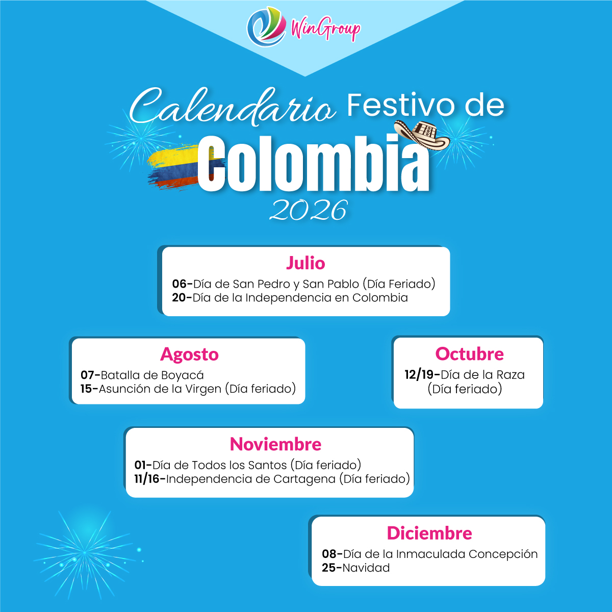 Calendario festivo de Colombia 2026